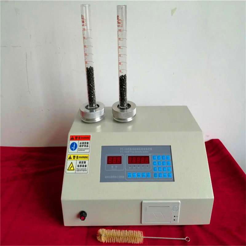 振實(shí)密度是在機(jī)械拍打裝有樣品粉末的容器后得到的一增大的堆積密度。振實(shí)密度是通過機(jī)械裝置拍打裝有樣品的量筒或容器得到。在記下最初的粉末體積或重量后,機(jī)械拍打量筒或容器,當(dāng)體積或重量的變化非常小時(shí)記下讀數(shù)。機(jī)械拍打是指通過下述三種方法中的任一一種讓量筒或容器上升到規(guī)定的高度,然后自由落下。拍打過程中旋轉(zhuǎn)量筒是為了降低樣品的分離程度。