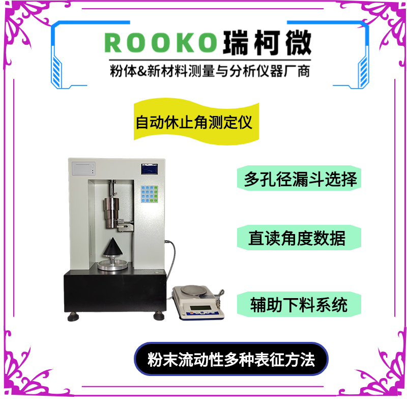 test time and angel of powder and particle pass through the funnel , preaccumulate before testing, so as to determine the sample weight, the known mass powder flowed from the funnel and form the accumulation of Angle, and the time it takes to outflow;You can obtain the angle of repose and the flow rate data.