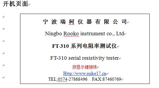 5.顯示:4.3寸液晶屏、直讀電阻值、電阻率、電導率、溫度、電流、電壓等數(shù)據
