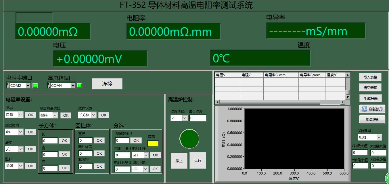 導體材料的電導率對溫度變化測量要求,測控軟件實時繪制出溫度與電阻,電阻率,電導率數據的變化曲線圖譜,及過程數據值的報表分析.具有氣氛保護功能.