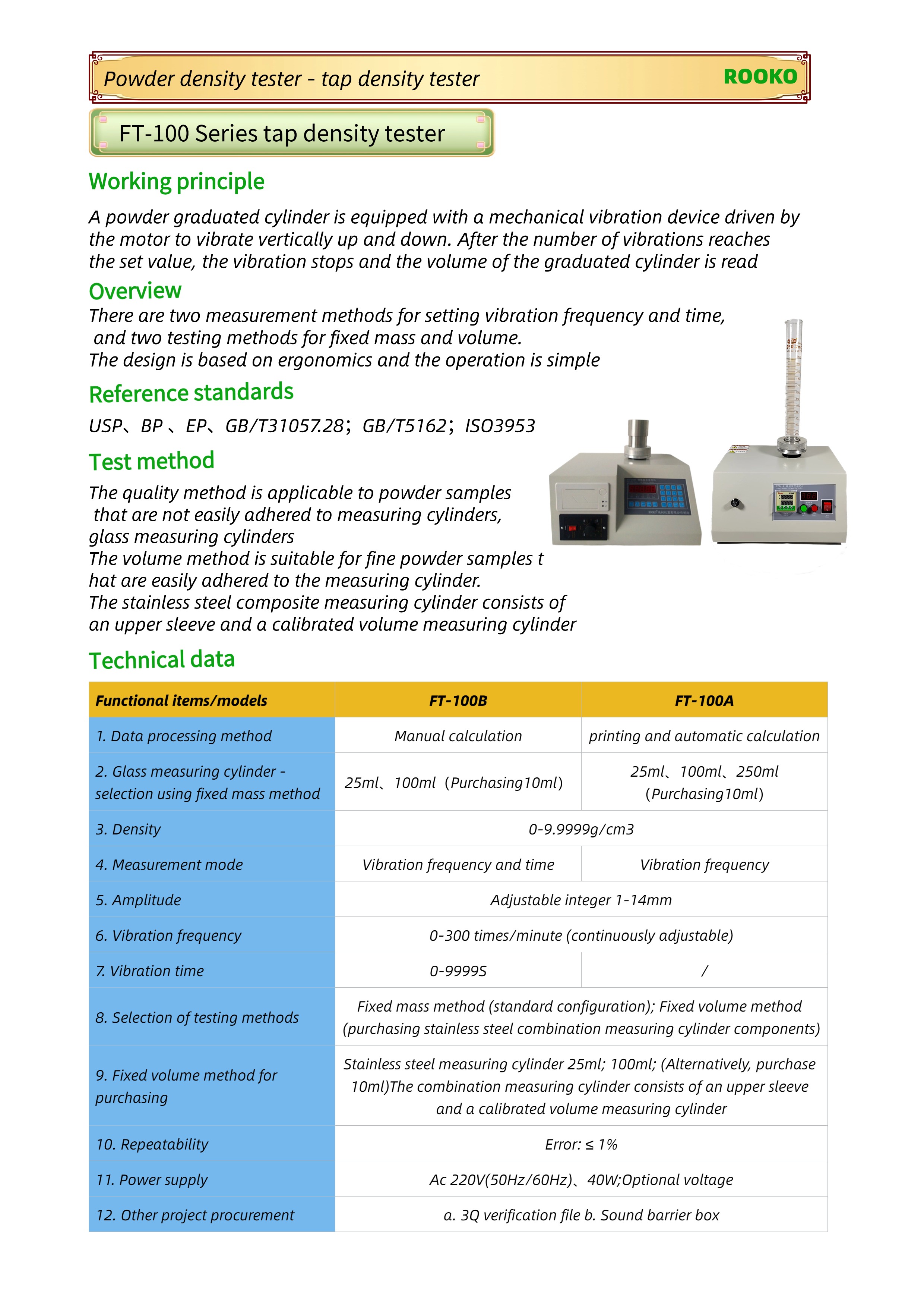 FT-100E series powder tap density meter