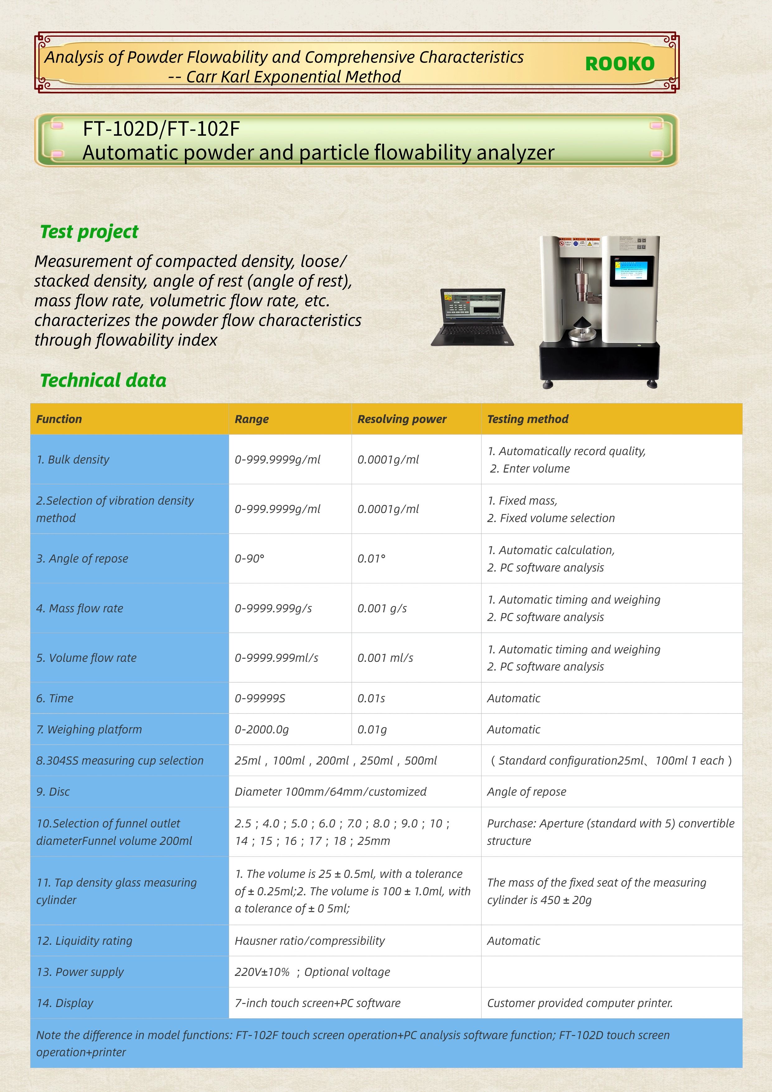 FT-102D/FT-102F Automatic powder and particle flowability analyzer