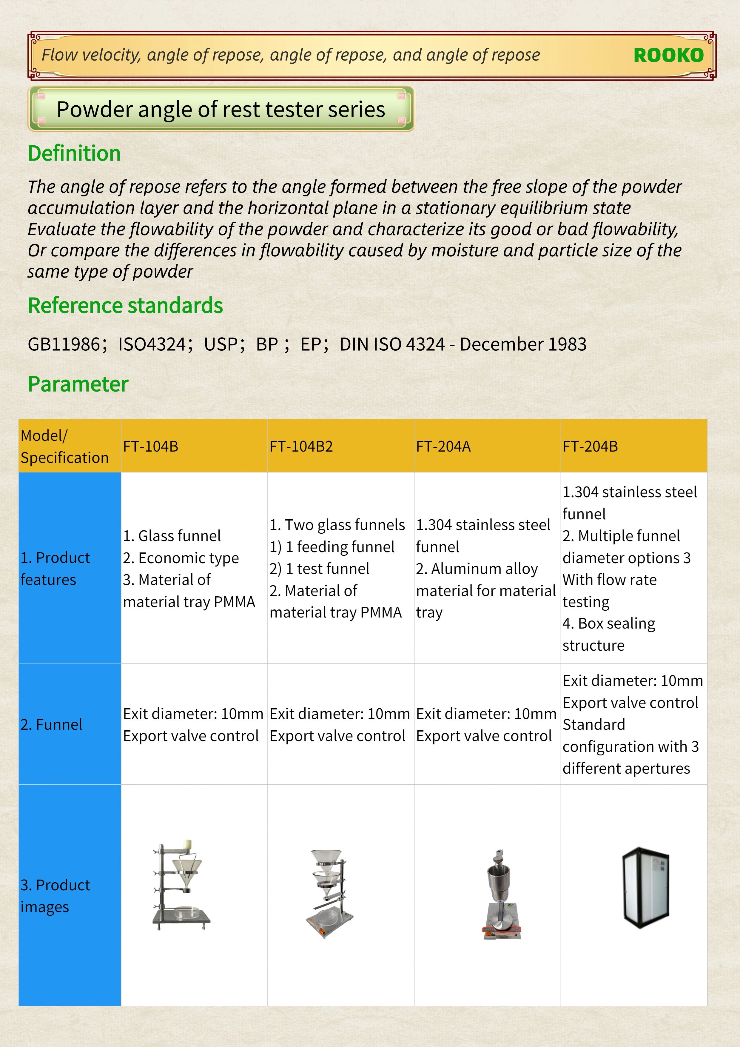 FT-202 series economical powder flowability tester
