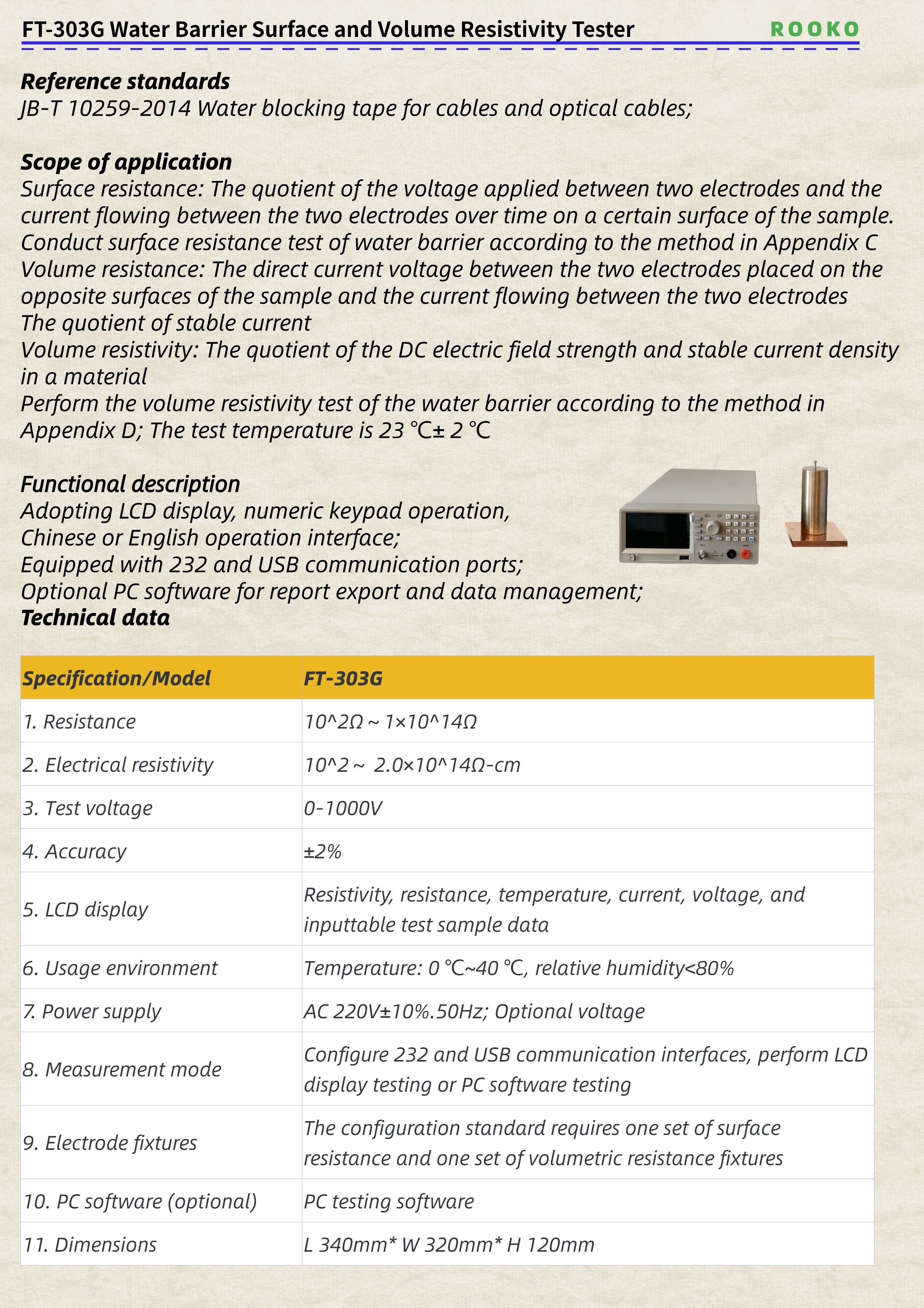 FT-303G Water Barrier Surface and Volume Resistivity Tester
