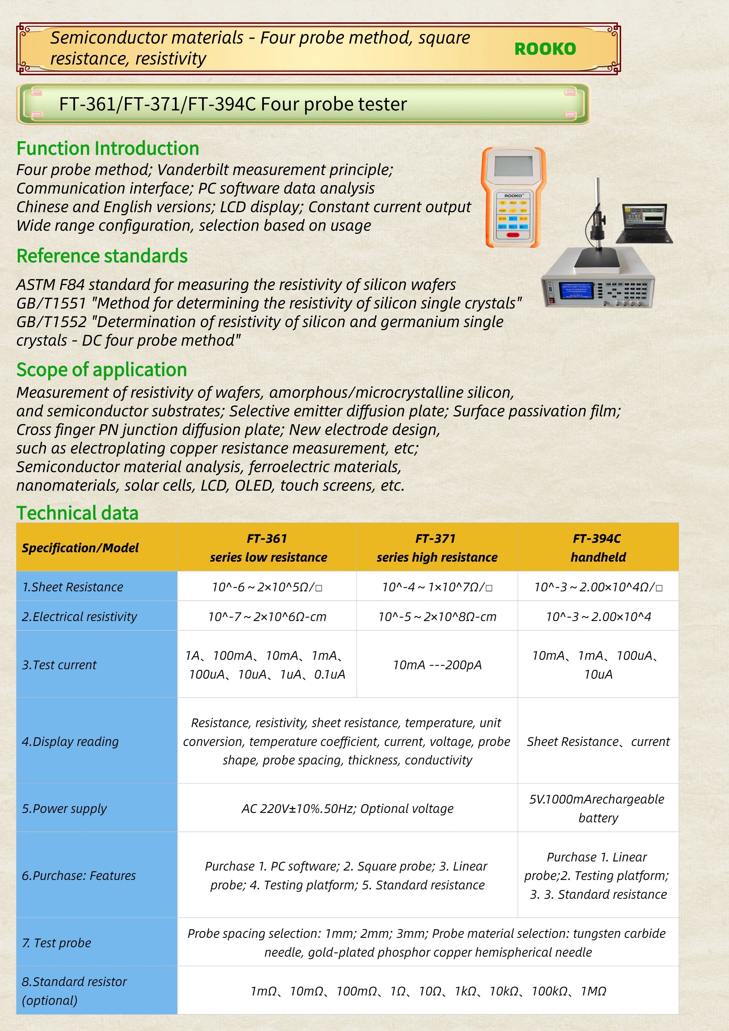 FT-361/FT-371/FT-394C Four probe tester