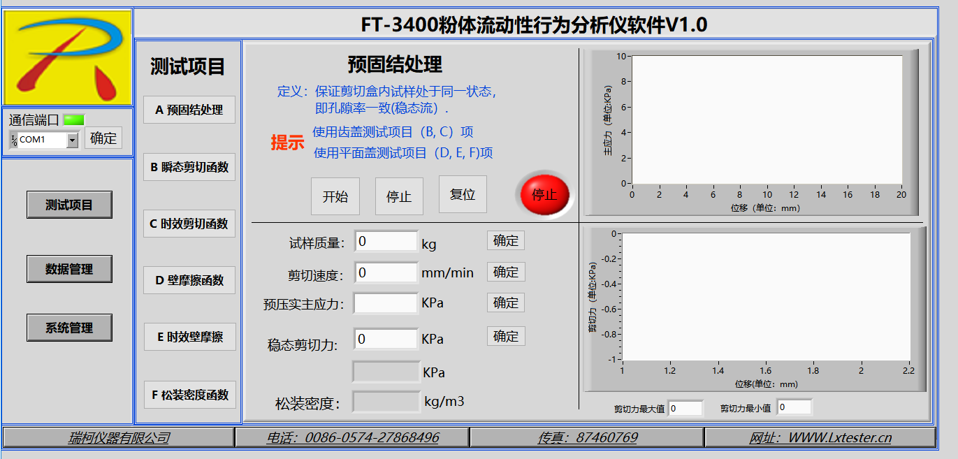 預固結處理;瞬態剪切函數;時效剪切函數;壁摩擦函數;時效壁摩擦函數 ;松裝密度函數 ;數據管理與分析;系統管理.